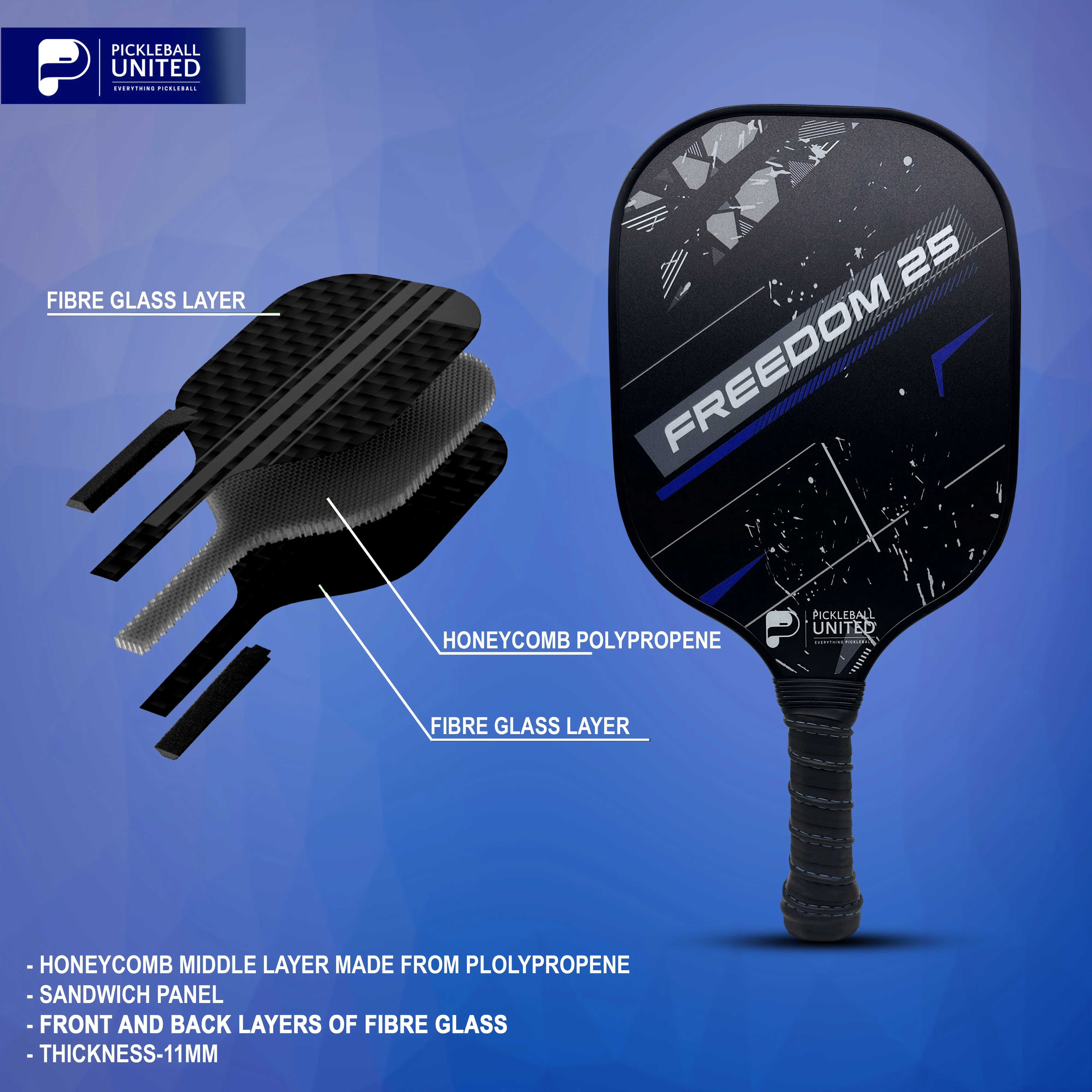 PICKLEBALL UNITED FREEDOM 25 PICKLEBALL PADDLE - BLUE