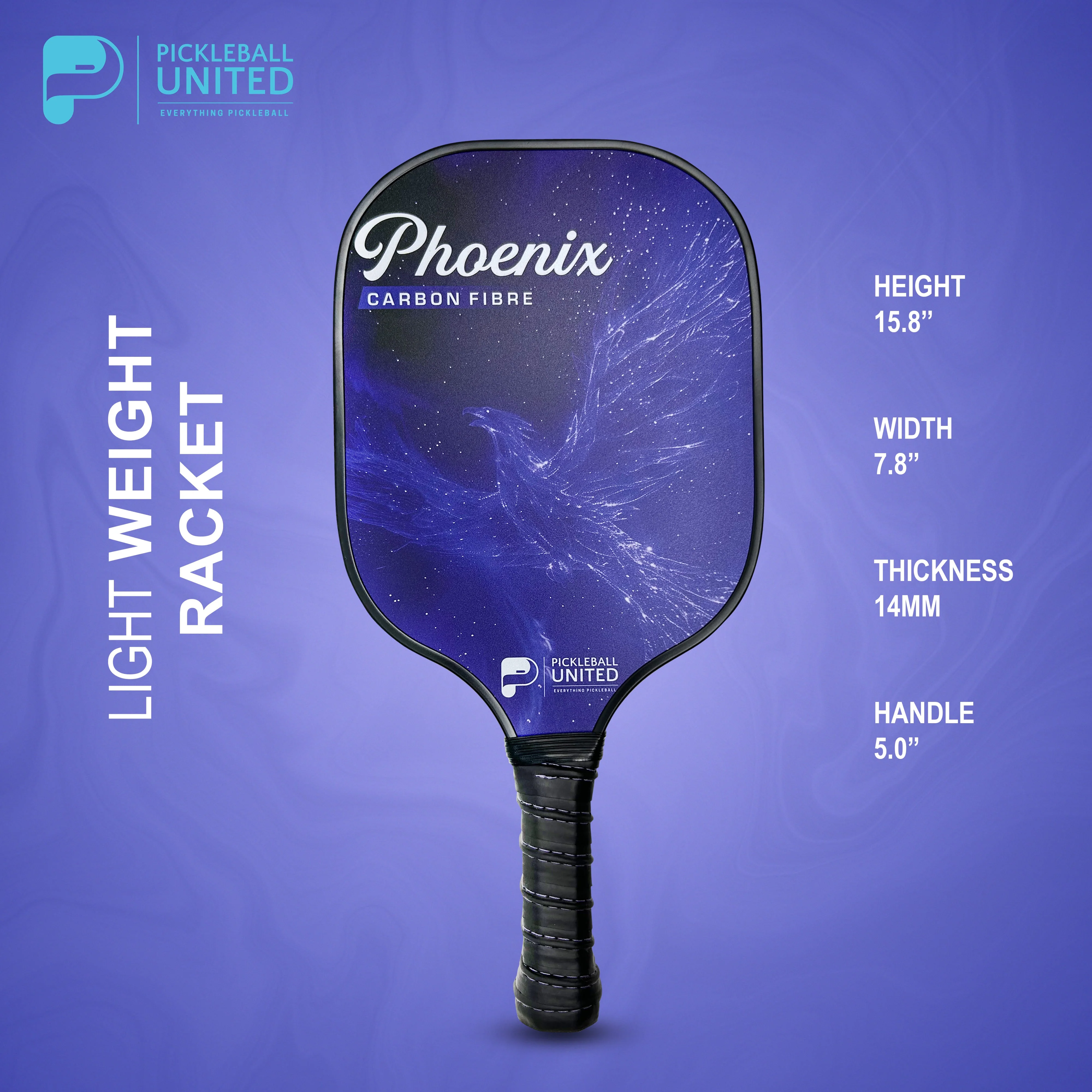 Experience unmatched performance with the Phoenix Carbon Fibre Pickleball Paddle, engineered for players who demand speed, control, and power. Built with a carbon fibre face, polypropylene honeycomb core, and durable PVC edge guard, this lightweight 210g paddle delivers explosive shots with exceptional precision. The anti-slip PU grip ensures superior comfort and stability during long rallies, while its optimized dimensions—15.8" height, 7.8" width, 14mm thickness, 5" handle—provide the perfect balance for powerful drives, accurate dinks, and all-around competitive play. Ideal for beginners, intermediates, and tournament-level athletes seeking premium performance.