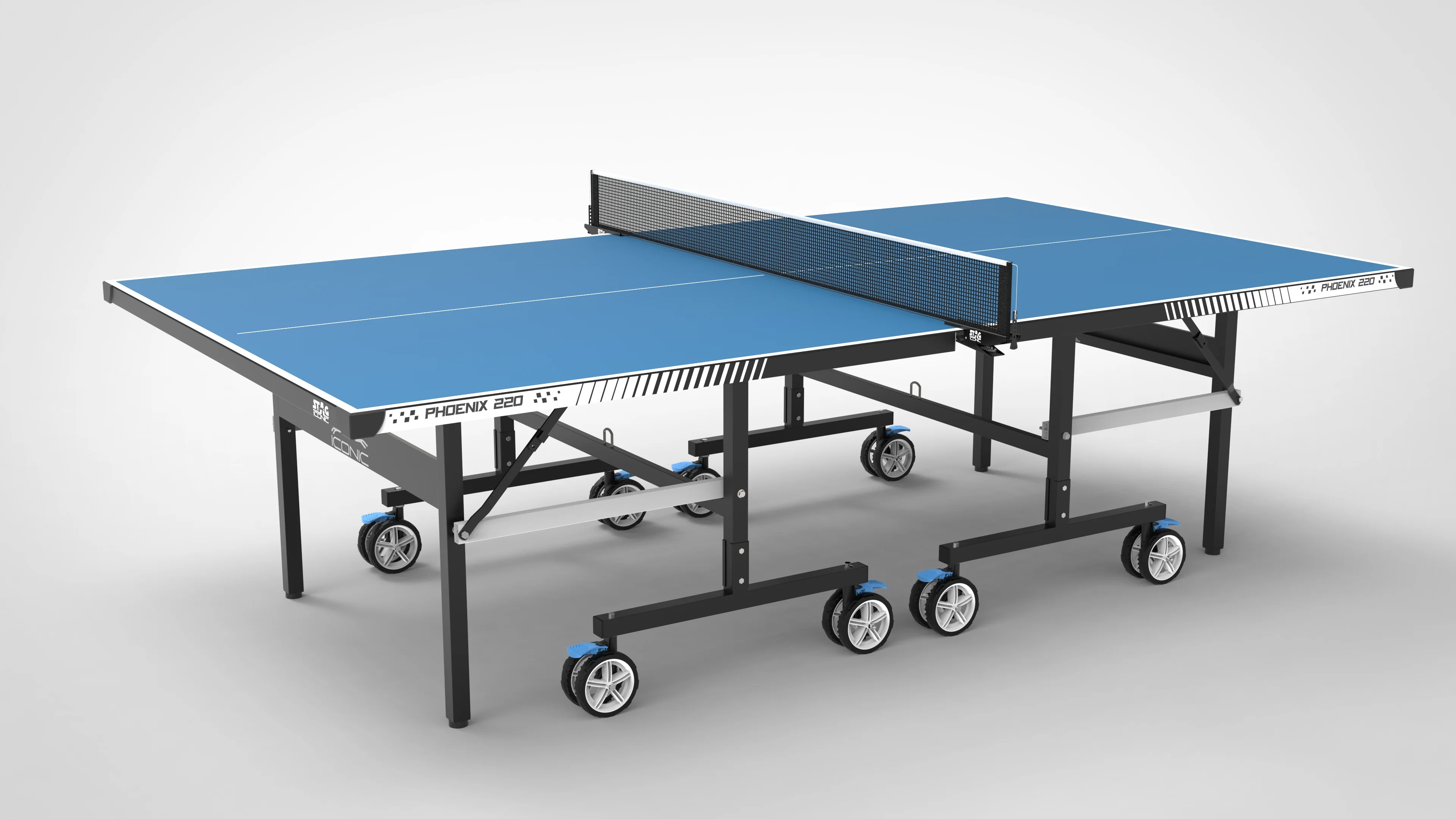 Built for seamless mobility, the table is equipped with heavy-duty 7-inch wheels that allow for easy transport across various surfaces, while integrated locking mechanisms provide maximum stability during matches. Whether for training academies, clubs, or tournaments, the Phoenix 250 sets a new standard for professional-grade play.