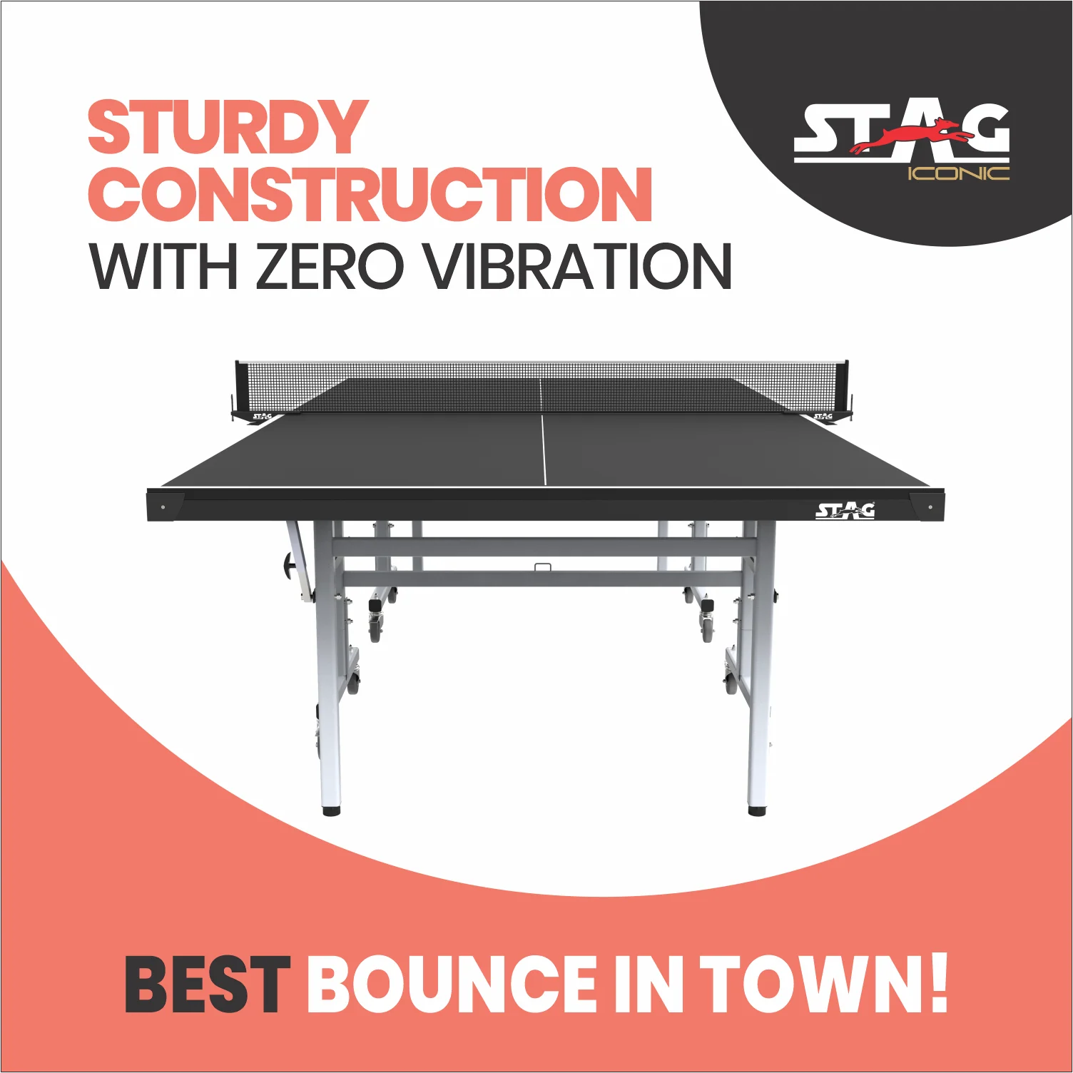 The Stag Iconic School Line Table Tennis Table is designed to deliver a professional-grade playing experience for schools and clubs alike. Built for durability and ease of use, this table offers quick assembly, making it ideal for daily use and easy storage. With a sturdy wood and iron construction, this table ensures long-lasting performance and a consistent bounce for competitive gameplay. Whether for team matches or solo practice with its playback mode, it accommodates players of all levels.